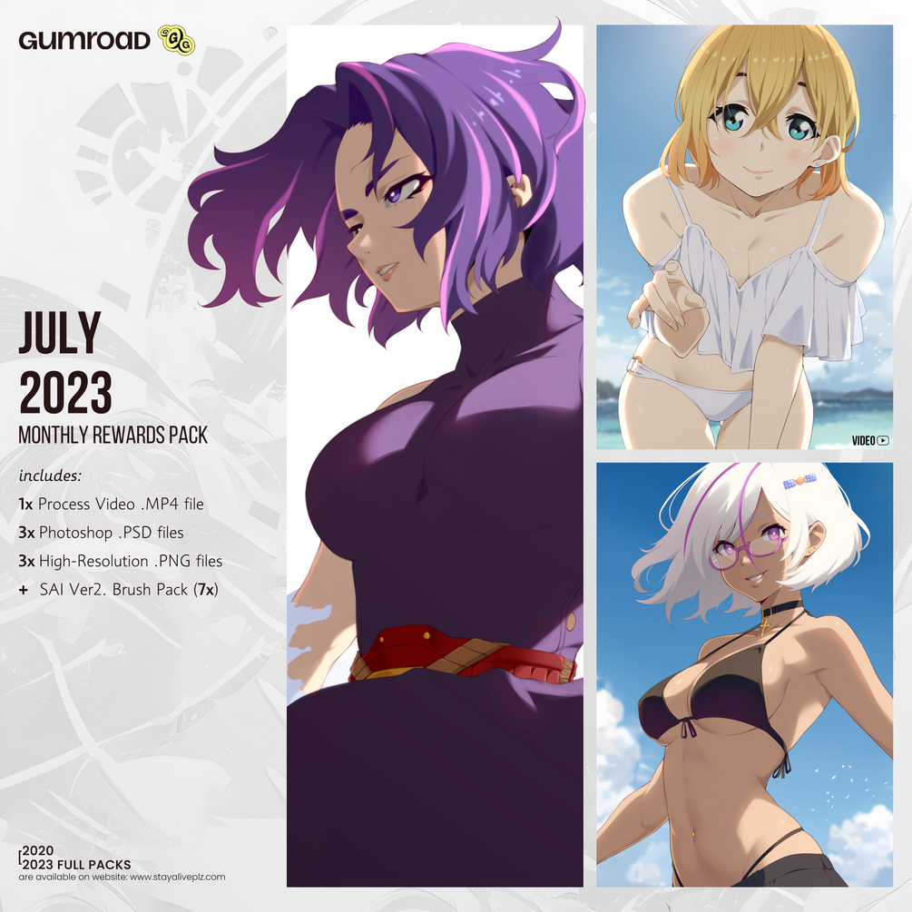 By subscribing to my Patreon, you can receive these packs monthly along with other bonus perks such as discounts, random rewards from previous months, a Discord role, and more.