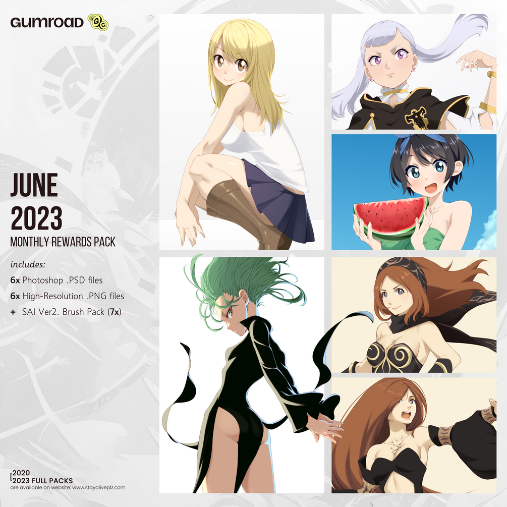 By subscribing to my Patreon, you can receive these packs monthly along with other bonus perks such as discounts, random rewards from previous months, a Discord role, and more.